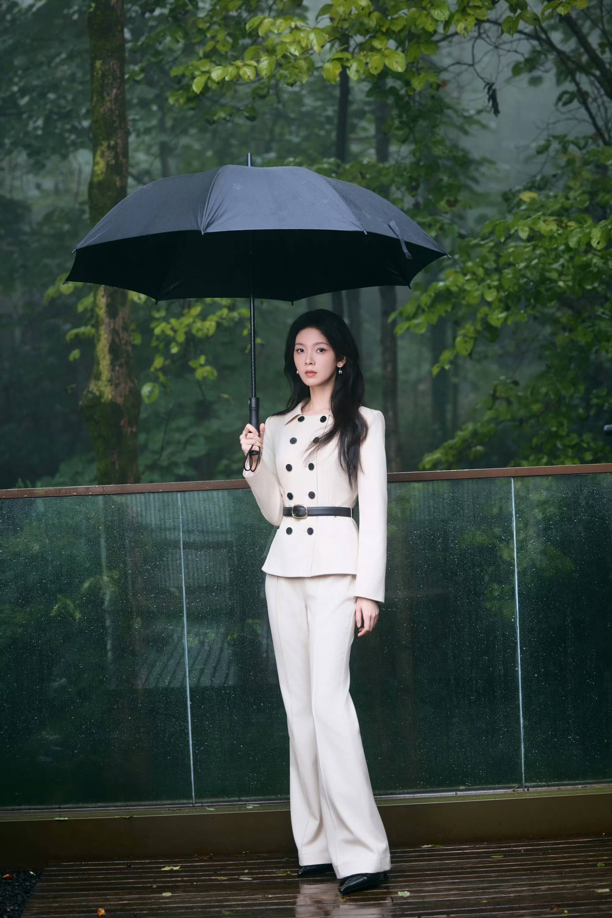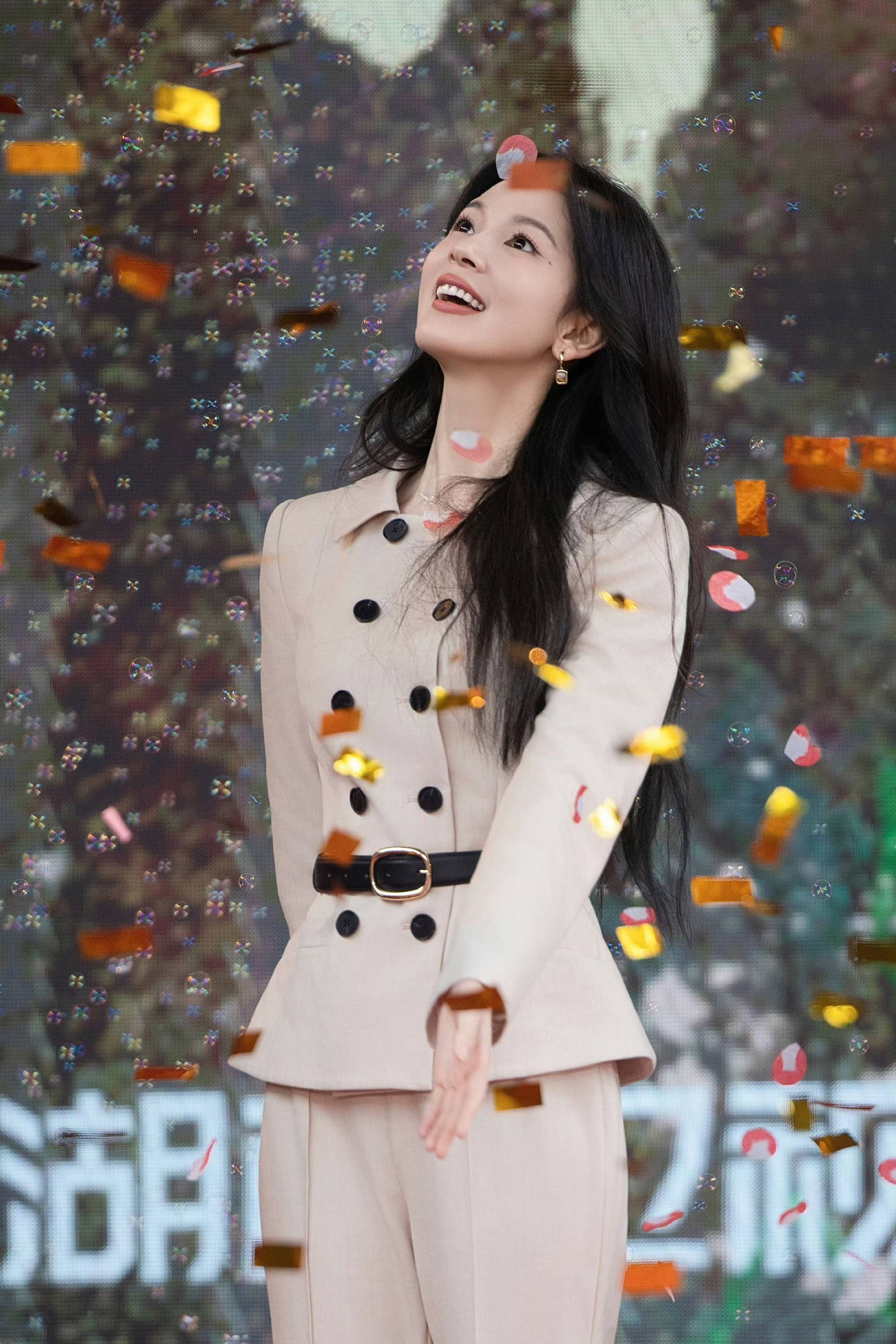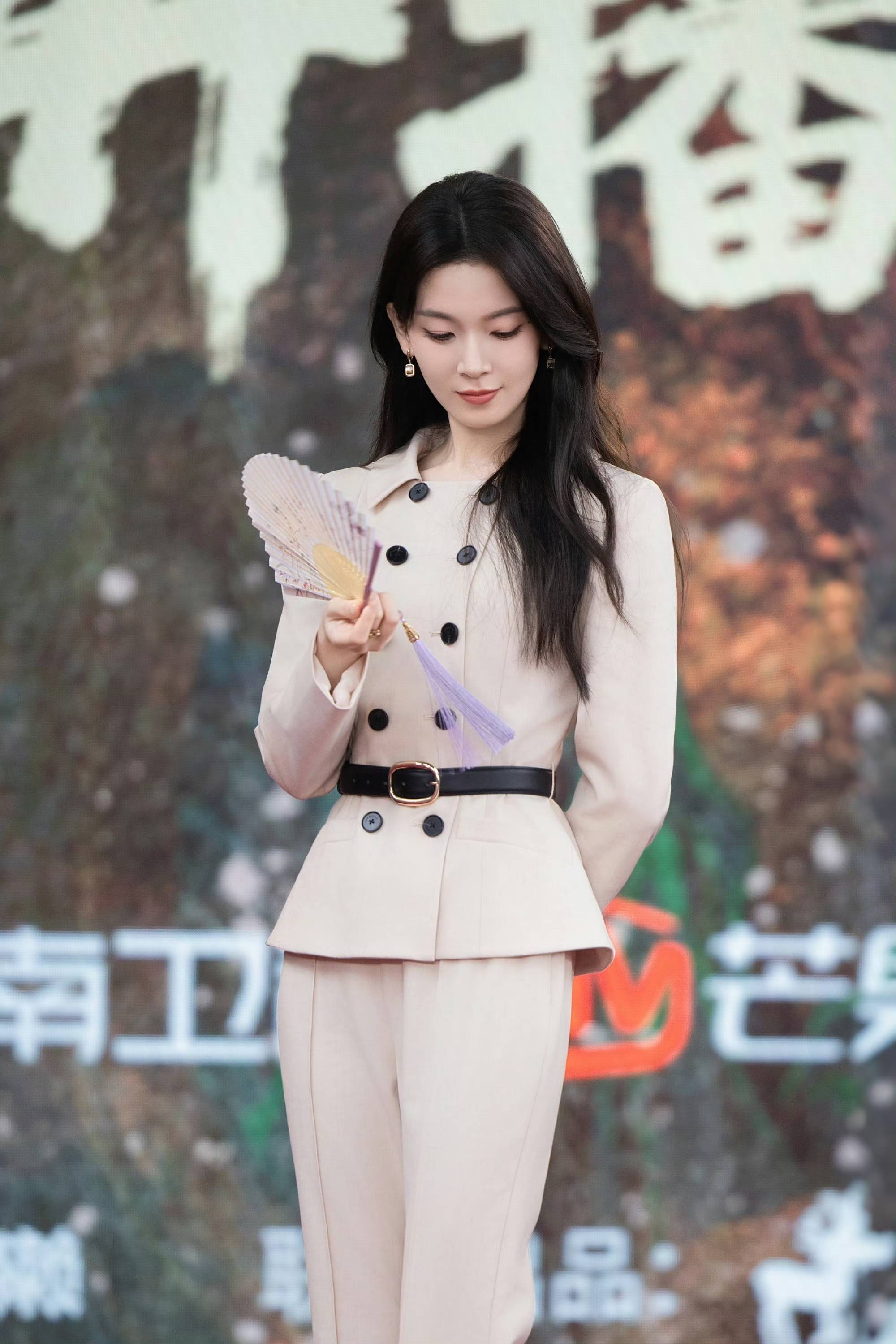 陈瑶浅驼西装风格二重奏,于自然与建筑间演绎干练温柔