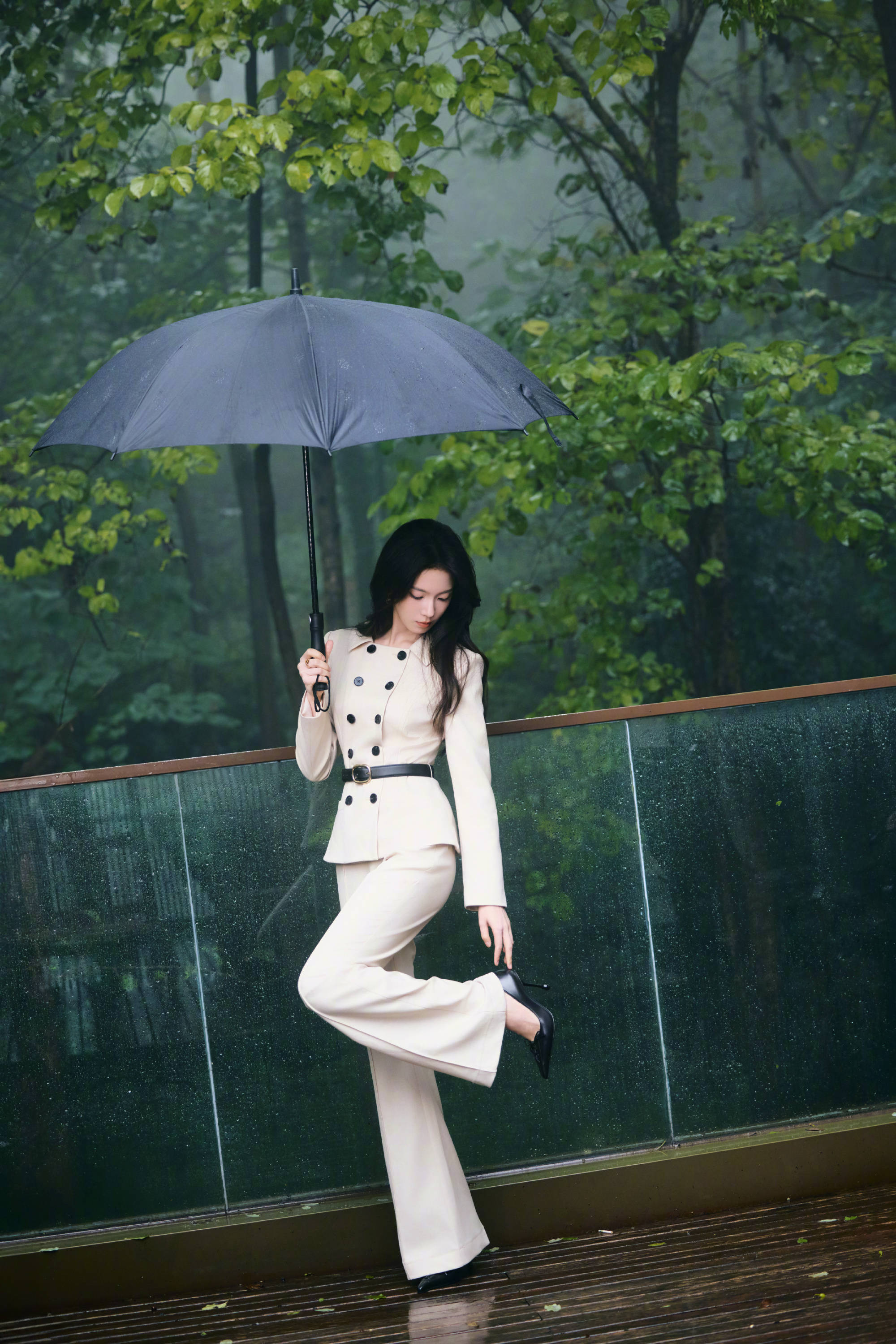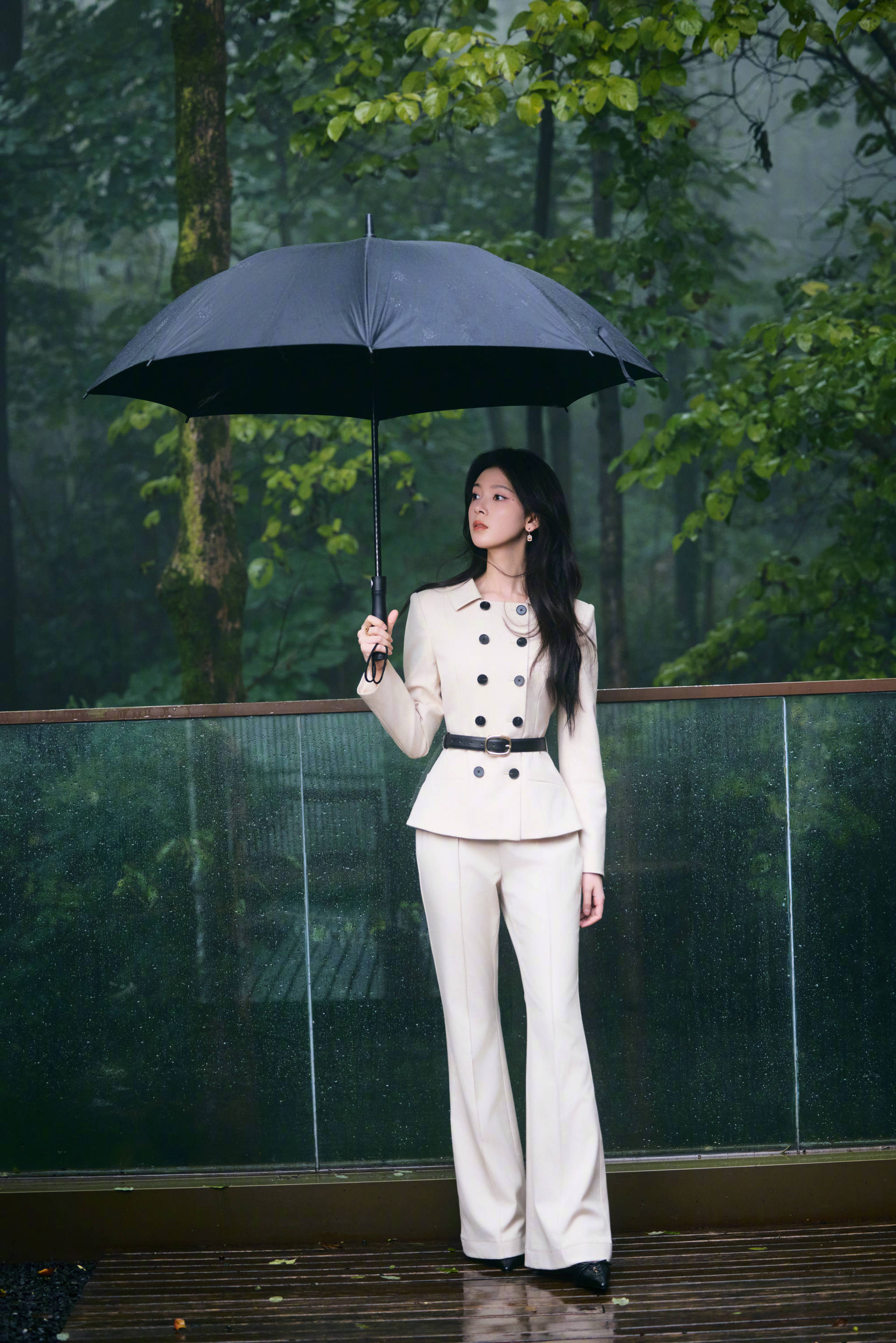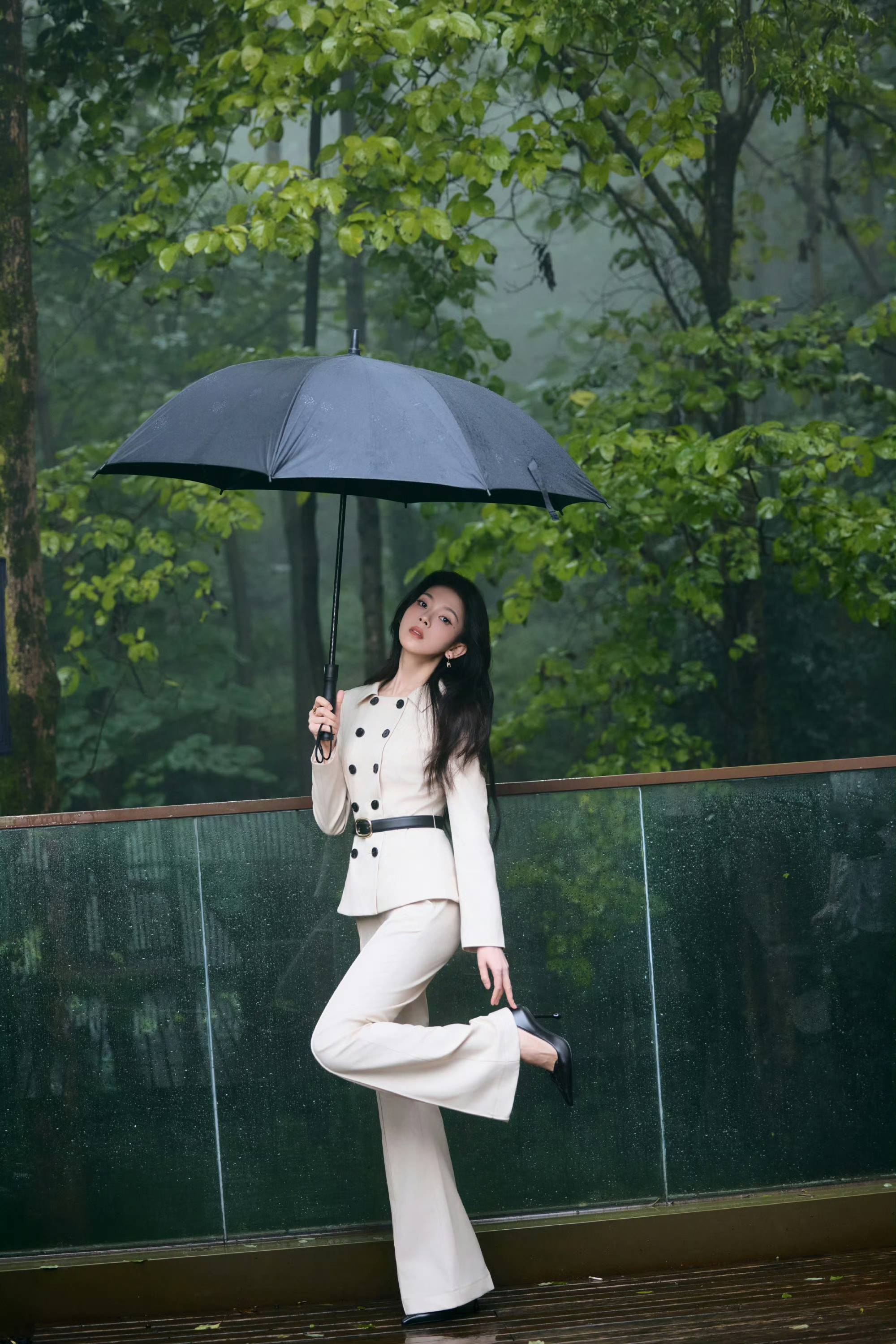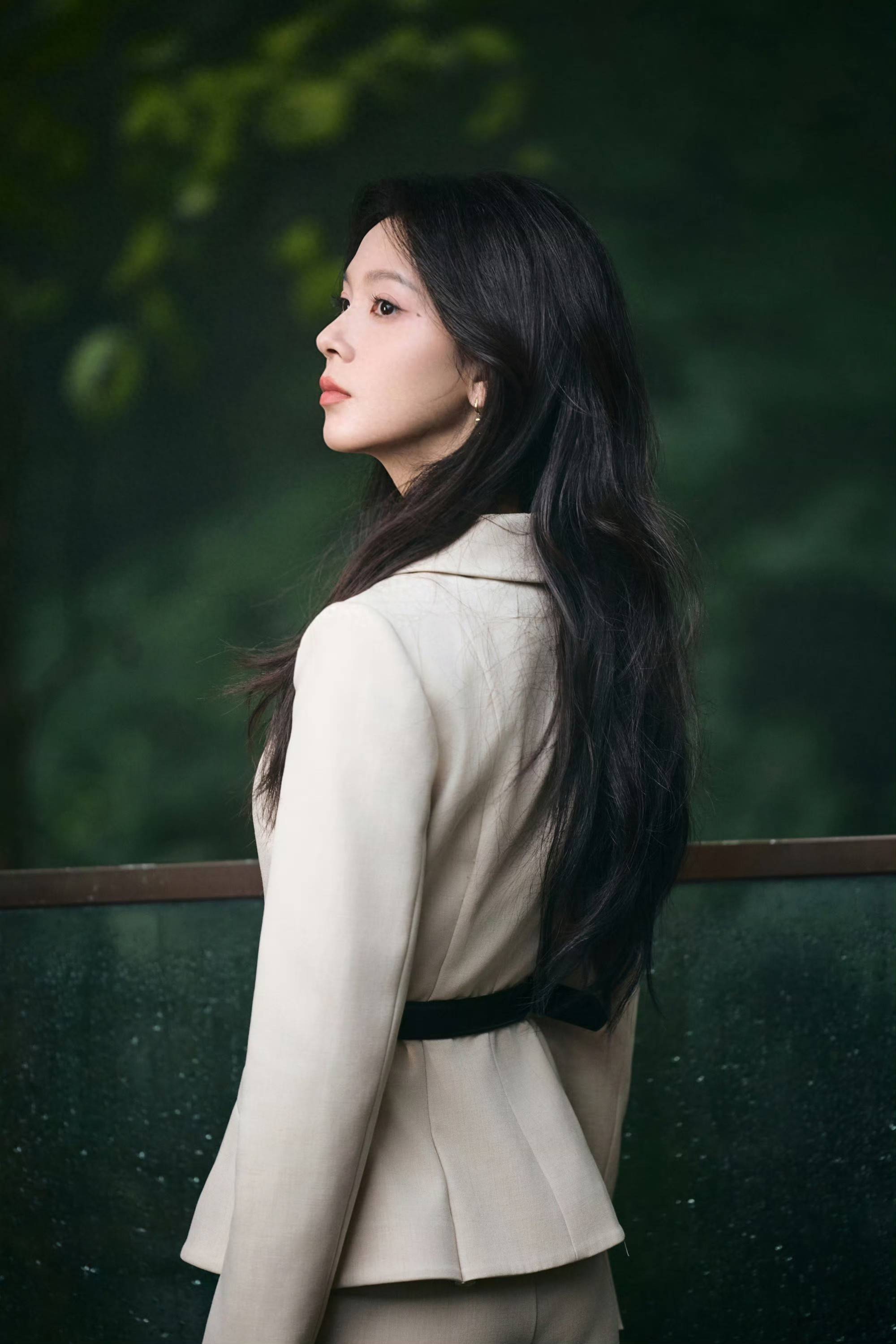 陈瑶浅驼西装风格二重奏,于自然与建筑间演绎干练温柔
