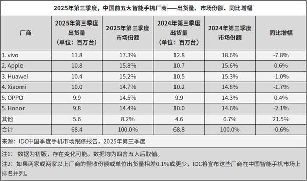 市场数据也在印证这一点。根据IDC 报告显示,2025年第三季度OV、小米、苹果、华为、荣耀的同比增幅最高只有0.6%,大部分的增幅甚至是负数,反而是“其他”品牌同比增幅达到21.5%。这说明,在高度集中的市场格局下,仍有一部分用户愿意为差异化产品买单。